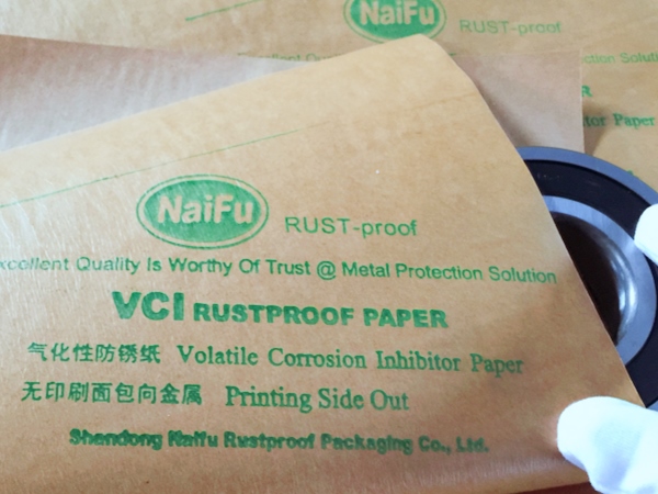 4、包裝過(guò)程---將含有緩蝕劑的面朝向金屬包裝,不覆膜防銹紙可作為金屬產(chǎn)品間墊層隔材使用,以免其他材質(zhì)阻隔材料含S、CL化學(xué)成分,影響防銹效果